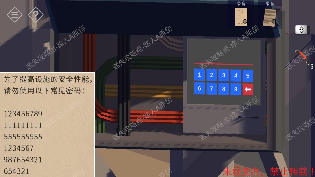 27.爬上房子外的天线塔,打开电箱,插入【门禁卡】,输入密码【123456789】。27.1