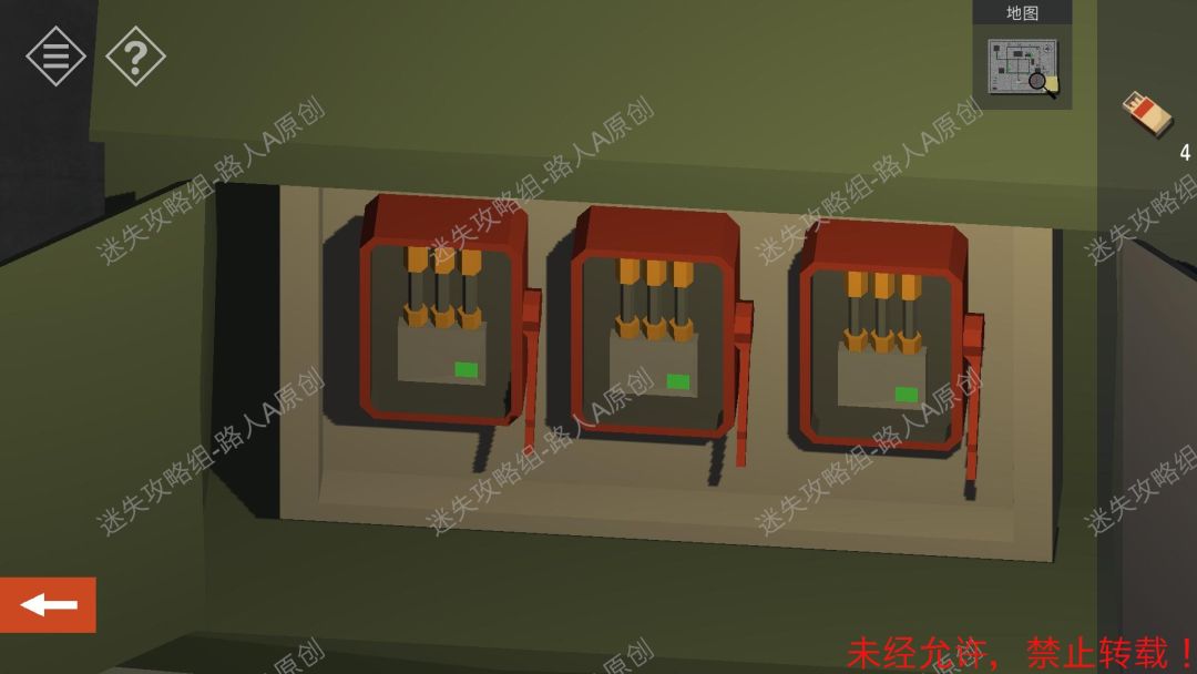 18.返回电源室,用【蓝色钥匙】打开电箱,安装上【红色拉杆】并且打开电源。18.1
