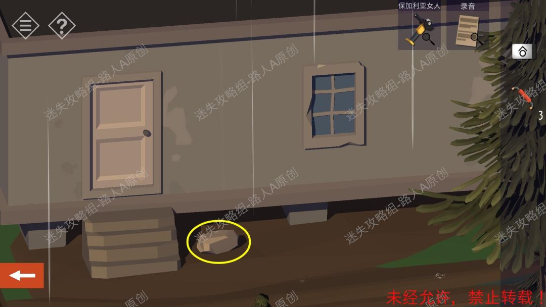 7.继续往前走,在房子下的石块找到【钥匙】,用【钥匙】开门,进入房子。7.1