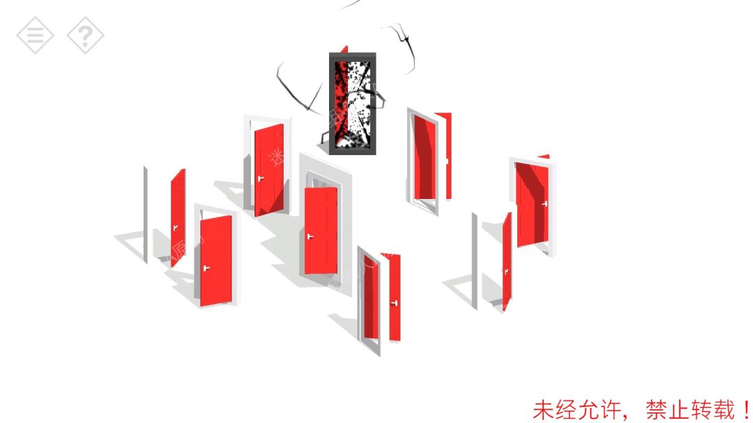 7.点击白色的门,变成红色的门,开门进去,出现3扇红色的门。