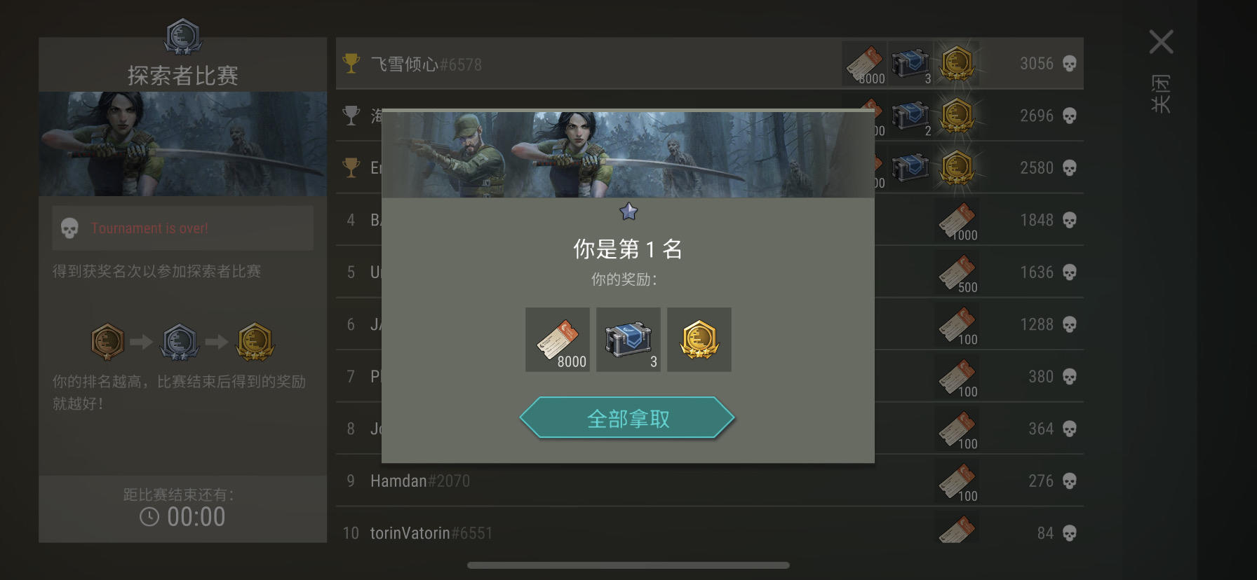 弹坑银赛打到3000分,略亏,幸好出了一把手工步枪