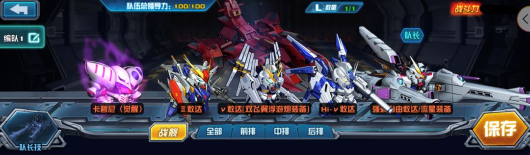 推荐理由:这是一支放弃前排机更加侧重于进攻的队伍,众所周知,Hi-ν的羁绊机师能极大的提升机体能量回复的速度。而强自流星队长技除了增加攻击频率外,还拥有在战斗前期增加能量的能力,两两相加,就能在战斗前期产生极大的爆发力。