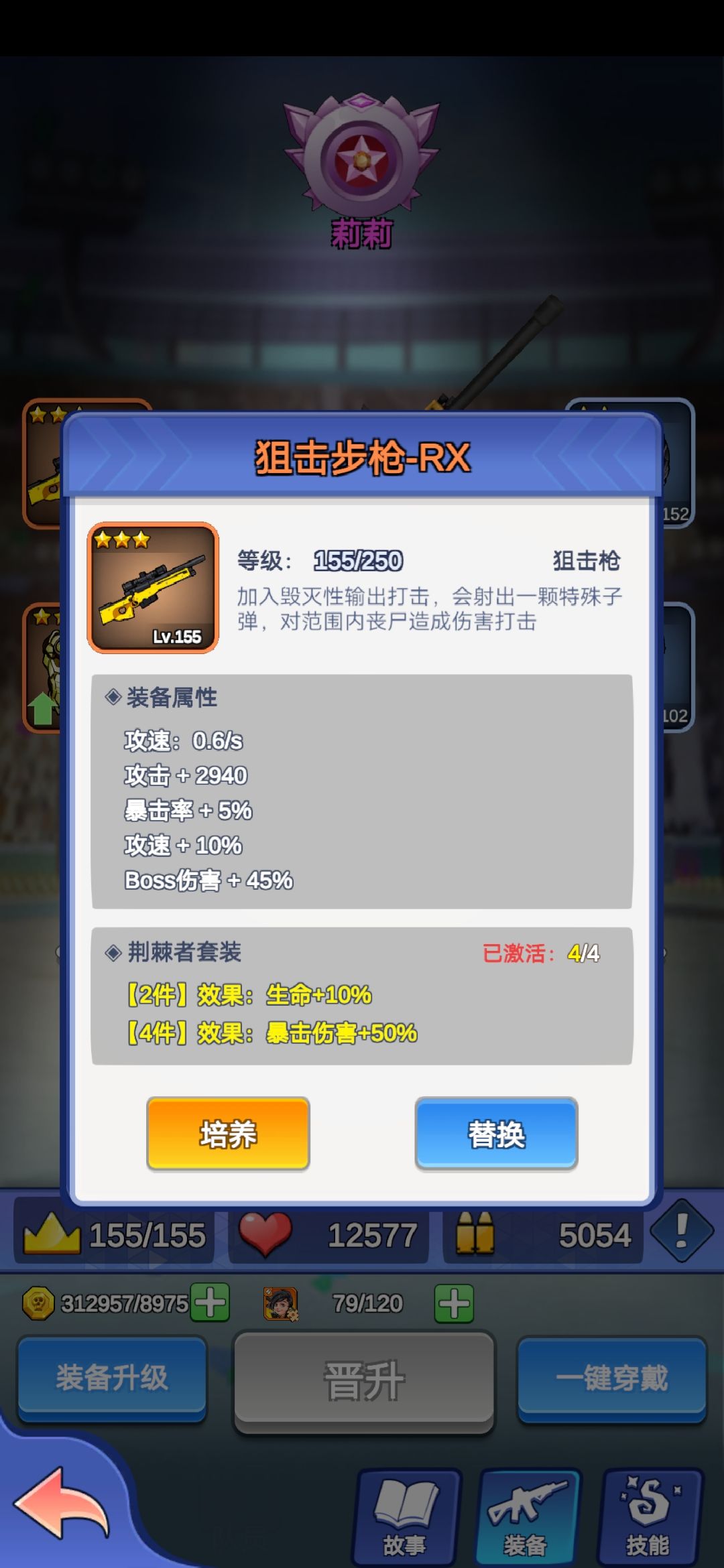 武器:炼狱,攻击射程近,不过有特殊属性,每隔一段时间,全地图攻击,应该是按照怪物的百分比掉血,可吃暴击,和暴击伤害。可以配合进图的buff 落雷 全屏雷击。适合推图打小怪。
