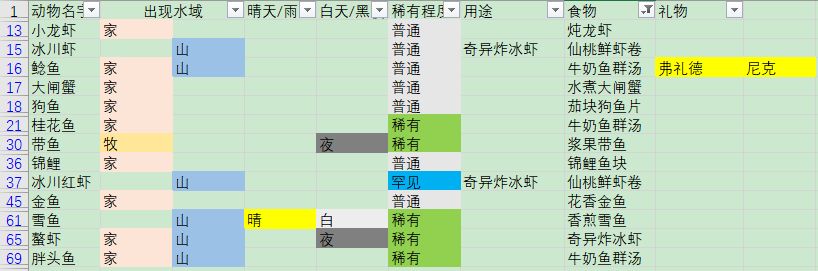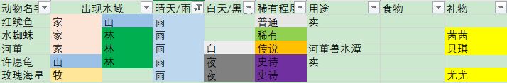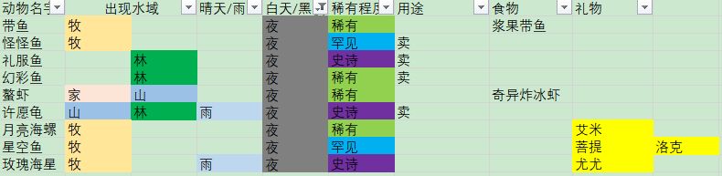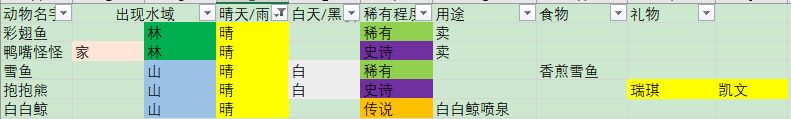 2、添加白晴、白雨、夜晴、夜雨、白天、黑夜、晴天、雨天时的独特鱼类,方便大家判断什么时候钓什么鱼