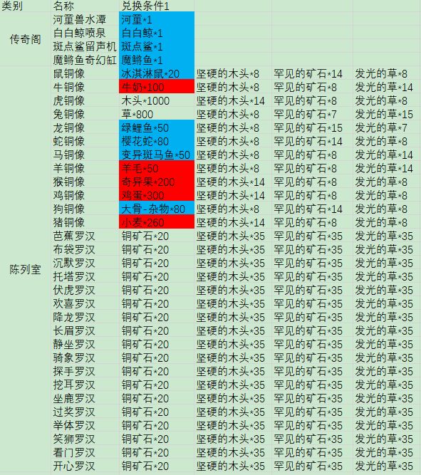 补充下兑换,兑换找大力(城堡),下面附个兑换列表