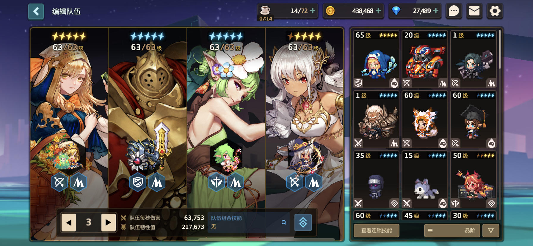 一共3队,1队秒伤6.3w,2队带了饰品和魔卡秒伤5w,图上的二队是什么都没带的,所以秒伤比较低~。3队等狐狸抽到了,把土弓下放到3队带个队,配合烧瓶破甲,偶像buff一下也能打。