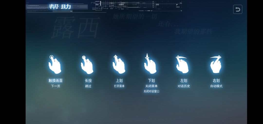 在游戏中从文本框上滑可呼出菜单,在标题界面右上角有个问号就是提示各位玩家的,可能不是很明显通俗。