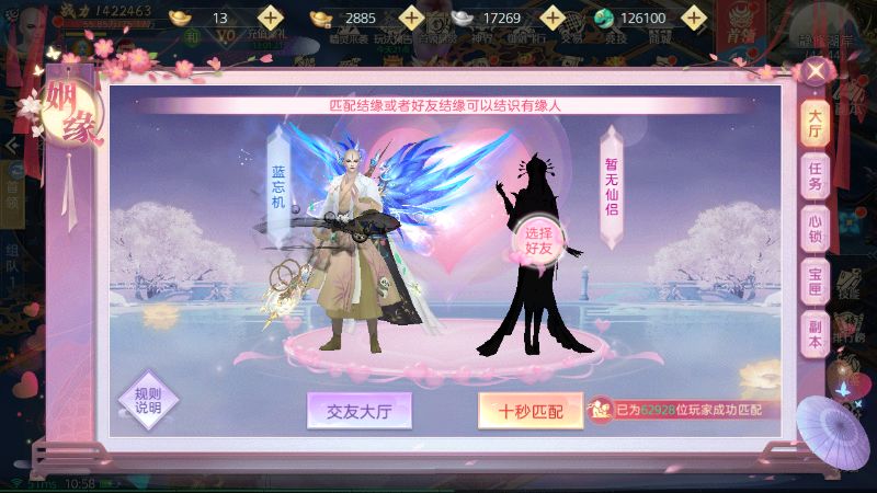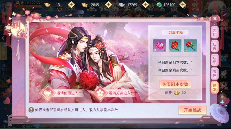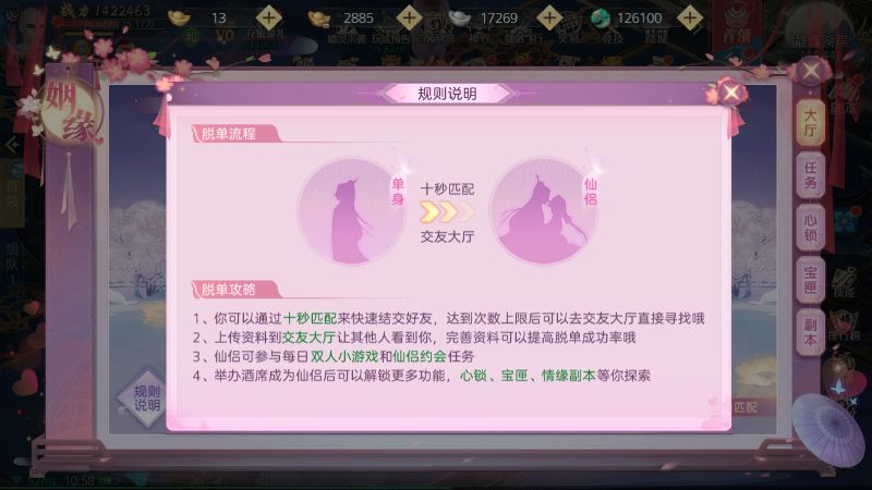 3、仙侣可参与每日双人小游戏和仙侣约会任务