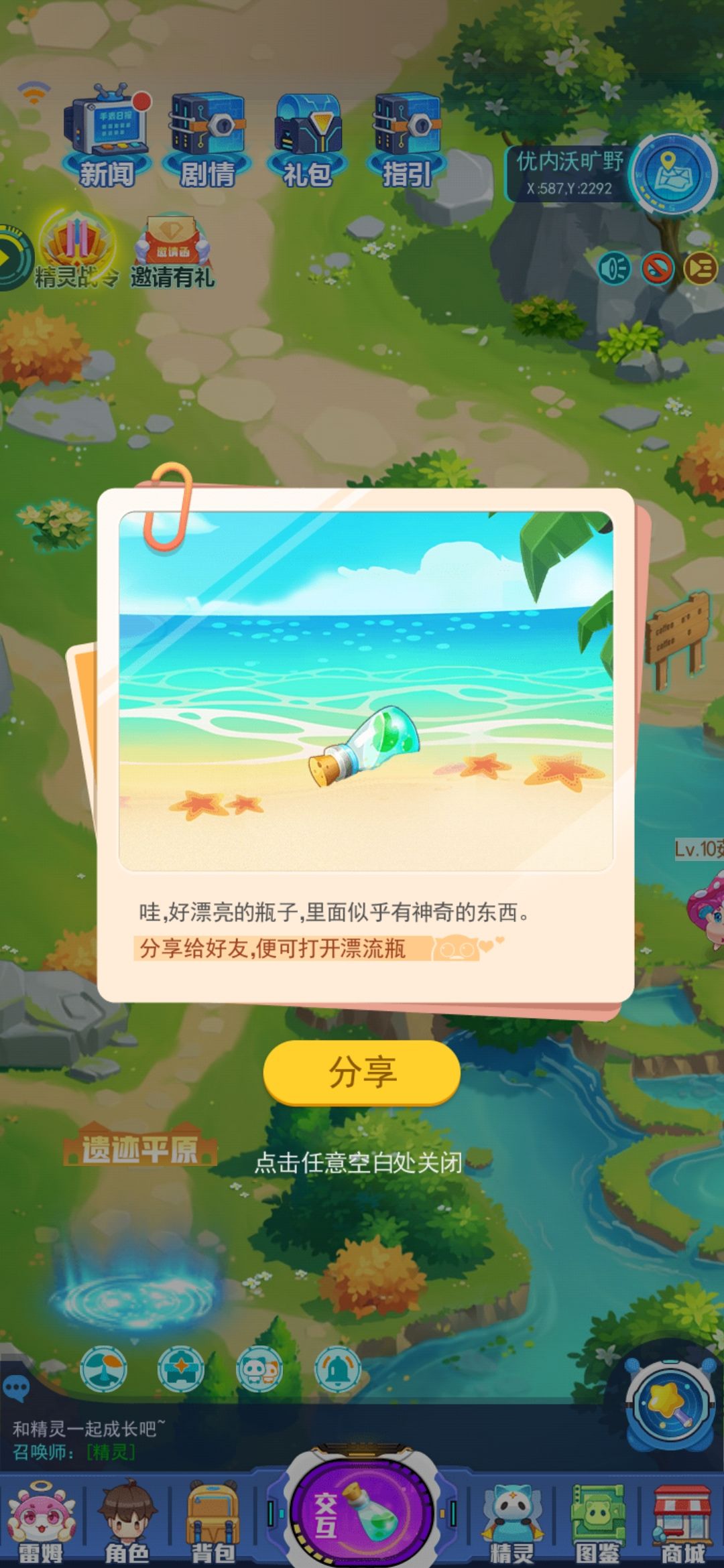 这个漂流瓶分享了没用啊
