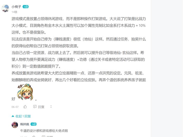 比较复杂的战斗体系和配套的玩法,例如鬼谷八荒,随机狂魔的确在研究,也在储备思路,但是不会在这款游戏上体现,完全不是一个机制哈,另外鬼谷很好玩哦,希望我学(can)习(kao)出来一个新的游戏的时候各位不要口吐芬芳,轻点。莫急 那个年底会有展示