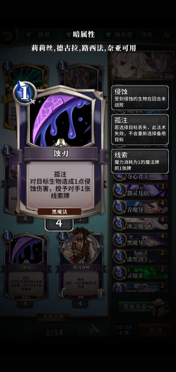 1费毒杀起手不用留,效果写了但是还是有必要再说一下,这牌是使一个敌方指定随从中毒然后打一点伤害给对面一张一费摸一张牌的卡手卡牌(手牌上限为8,超了的过牌卡牌会直接消失),然后回合结束时如果这个中毒的随从没有被自己方随从杀死,或者解除掉中毒状态,那么将一定会被消灭而离开场上。但是这卡不能指定带魔免的随从,被毒了随从也可以通过融合回手等手段消除掉中毒效果,有些随从免疫中毒也不能对其使用,这个一般作为一费法术有一说一,非常强了,因为他可以杀死这游戏的不朽随从(无敌,但是怕毒,变形,减体力),而且可以给对面塞一张一费的过牌。
