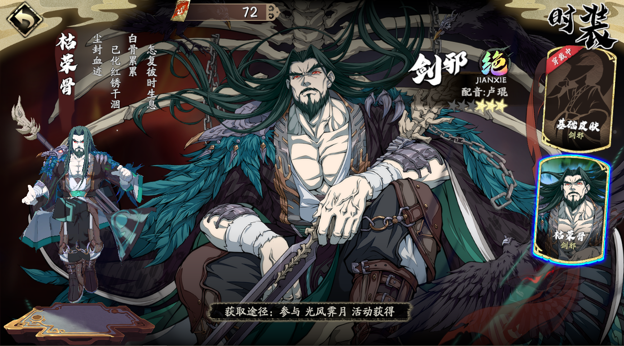 这次的更新又上架了三款皮肤,分别是:冰璃的「罗睺」、 宇韶容新皮肤「茕茕孑立」和剑邪新皮肤「枯荣骨」。