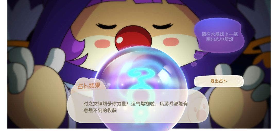 我占卜四天,两天红鸾星动这类听起来玄之又玄的,占卜完什么都没发生。另外两天,一天是适合耕种,会有意想不到的收获,但收菜的时候没注意;一天是下图,玩游戏运气爆棚,不知道怎么个作用机制,但我刚刚终于通了消消乐。