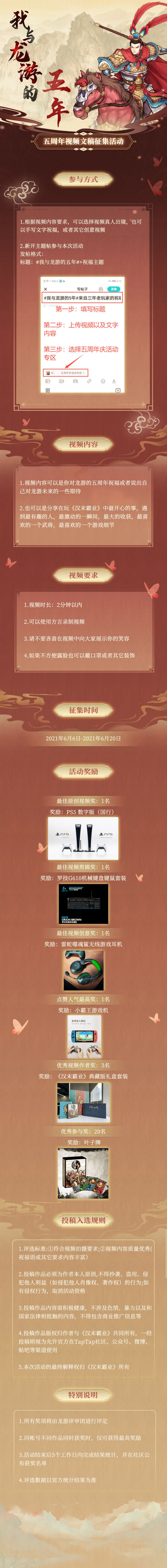 五周年之际,特向广大主公发起“我与龙游的五年”祝福视频征集活动。希望各位主公能够参与其中,让我们一起把这些美好的瞬间和回忆珍藏起来。(所有的素材将由于五周年庆视频合集)