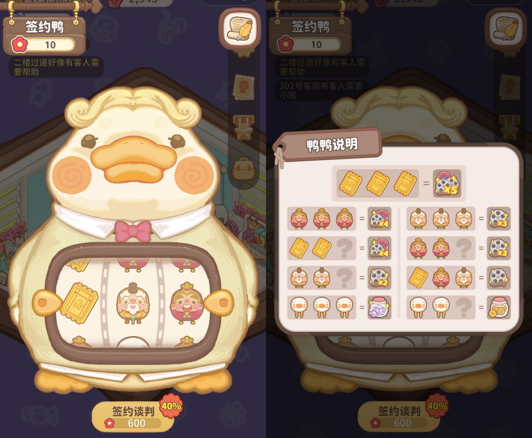 口碑罐(与小费罐类似,摆放于放映室类)可用于收取客人留下口碑(可以翻倍),口碑用于和签约鸭进行谈判,谈判随机到不同的组合,可对应获得新影片、糖果、小饼干等。