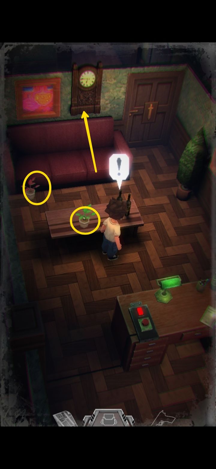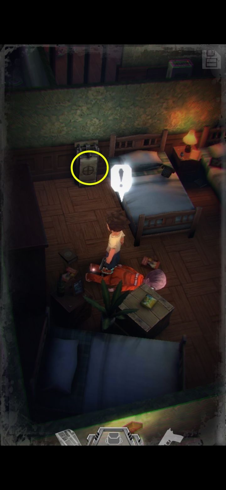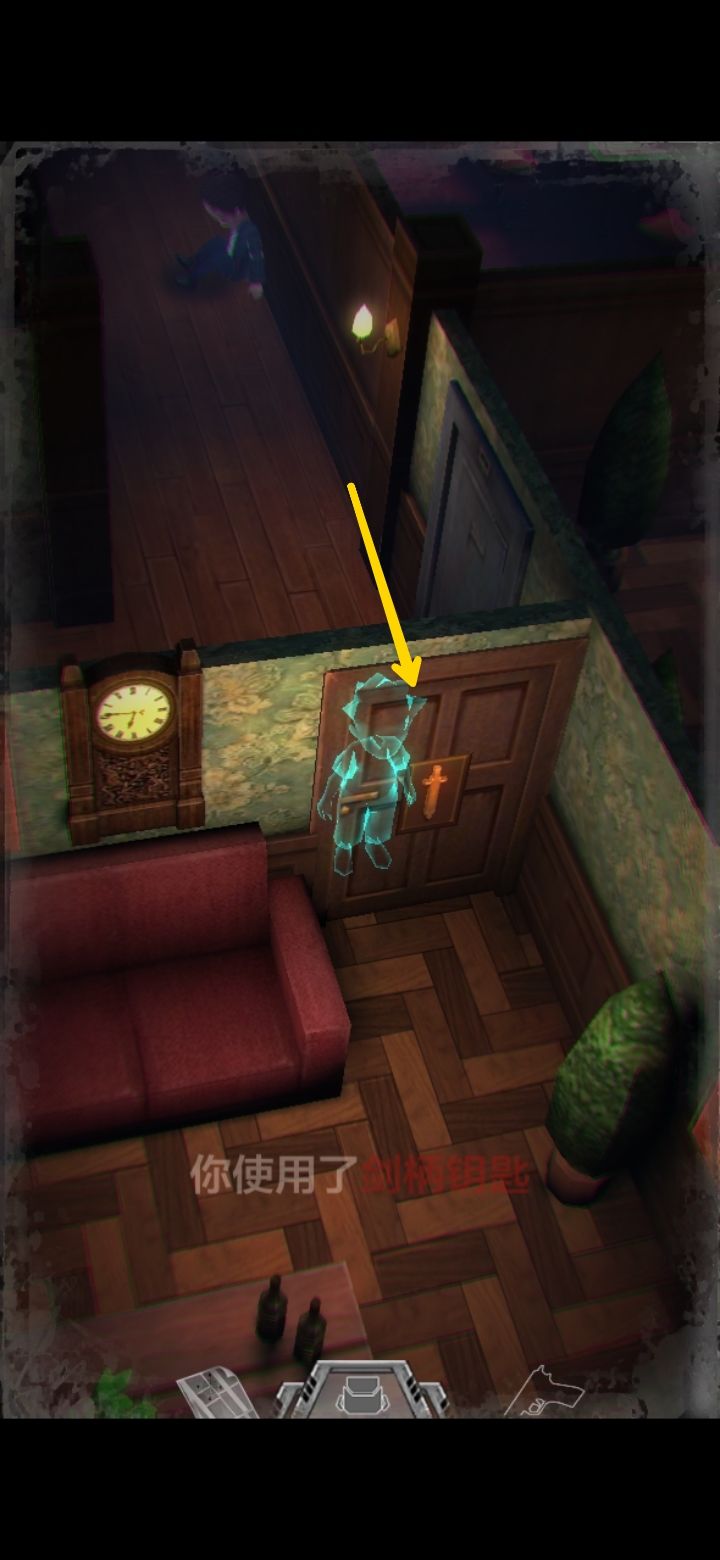 捡药,打开背包把红绿组合一下可以得到药粉。男主血量有三种状态,绿,黄,红。一口药粉可以从红直接治到绿,比吃小药划算很多。墙上的钟显示六点三刻,也就是六点四十五,645。游戏内的密码均为三位数。