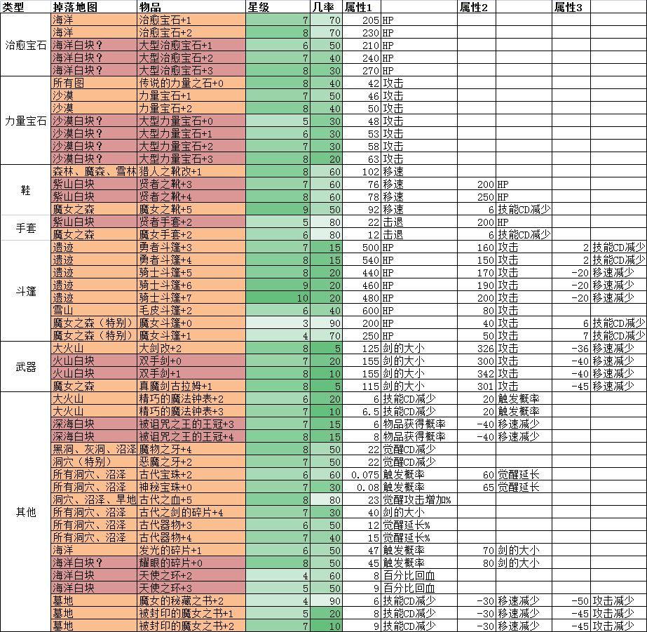 装备掉落信息(部分):