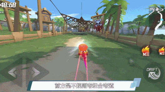 前方是两个不规则连续弯道,且弯道角度都较大,车友们可以先使用最佳化漂移的操作通过第一个弯道,同时继续拖漂通过下一个弯道,出弯后立刻衔接断位拉车头的技巧,快速摆正车头方向,冲向终点。但要注意躲避终点前的障碍物哟~