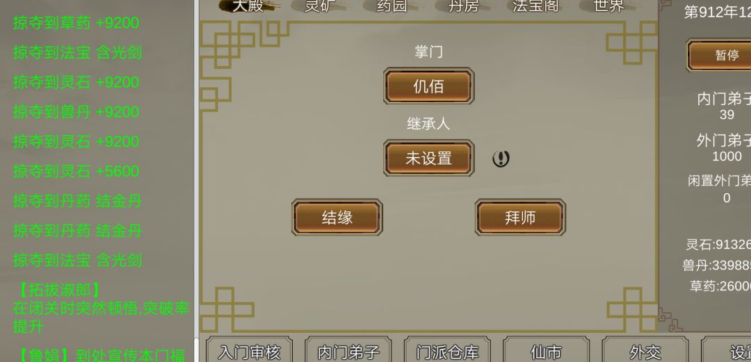 玩得伽蓝,前期勾住,开始专挑一个门派偷袭,升级大殿,前期全部踩灵石,后面开始刷丹药。一直苟到出现夔牛血脉弟子,恭喜你可以开始你的无敌之路,灵根不重要,无脑吃丹升就是喽。千万不要炼器,浪费外门人手,直接抢他不香么,全部炼丹就行(药草哪里来?当然是抢啦)。技能可以万剑,没有就防御系的,等级跟上大部队的时候,无脑挑战,从最垃圾的门派开始,一个个不停打,不停抢丹药,等级光速飞,然后就一统修真界了。