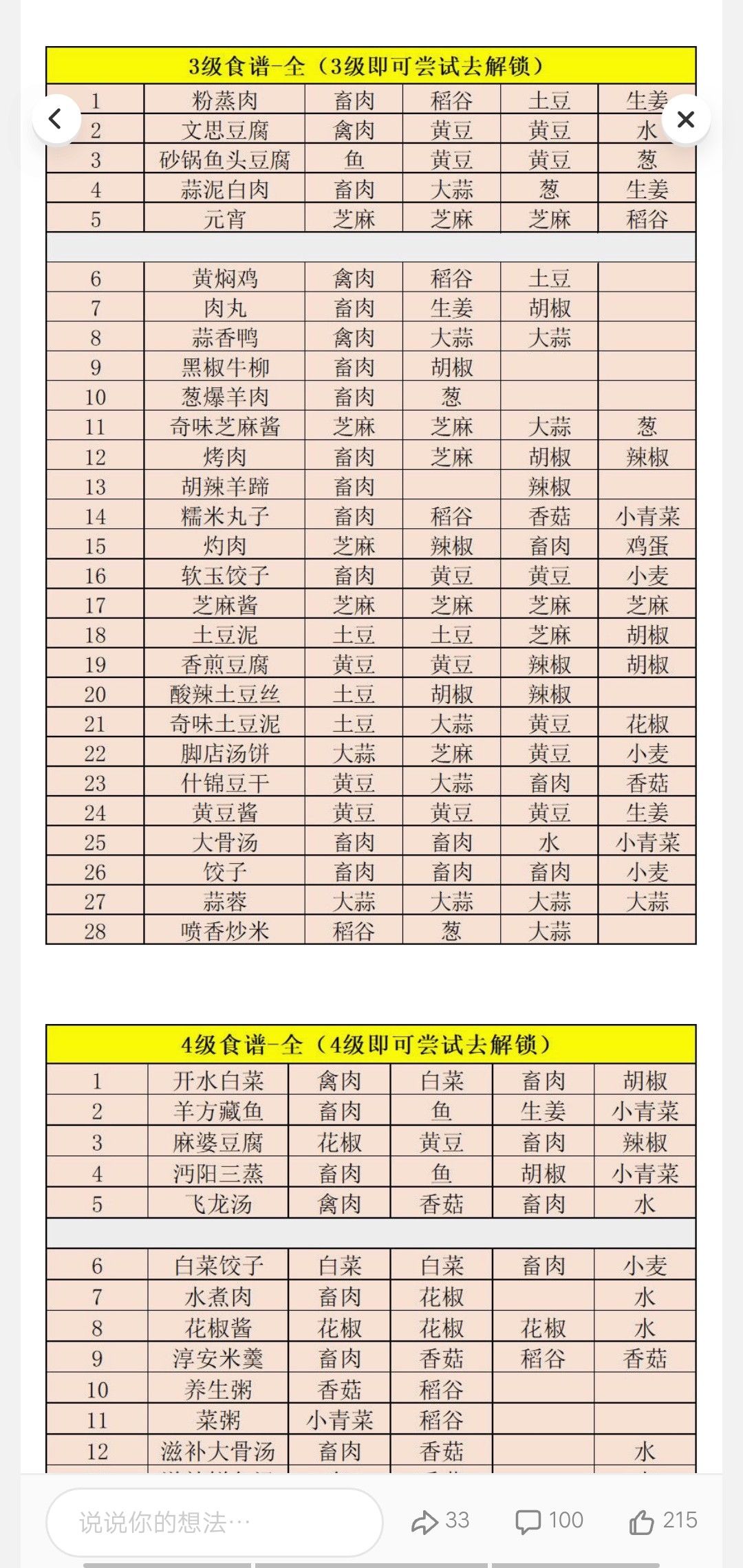 顺便发下菜谱,酒谱和药谱,本帖子都是网上的攻略,不是自己写的