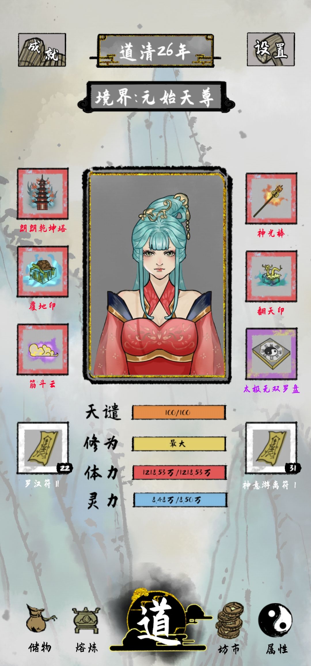 肝了三天终于顺利毕业啦,中途死了一次被九转金丹救了然后就走上了开挂道路,走召唤物流直接就是与攻击力挂钩,导致召唤物伤害极高,基本上是秒杀,所以到后期基本上没有打架的惊险了,天谴100问道也是秒杀,太极无双罗盘真的很好用(因为数量很多所以挡伤害,打架过程基本不掉血,这也是我没有换下它的原因),中途把翻天印和覆地印凑齐了,这也是我第一次凑齐,真的真的有时候死亡就是一次新的开始,运气真是太重要了。