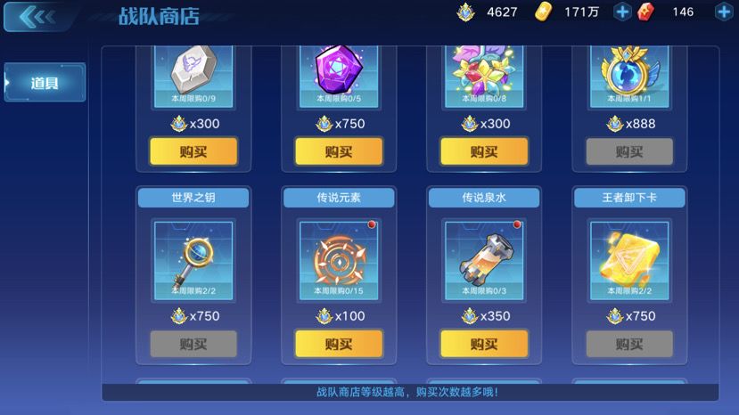 本周限购除了金币和星光全部拉满!余下的拉满每月限购