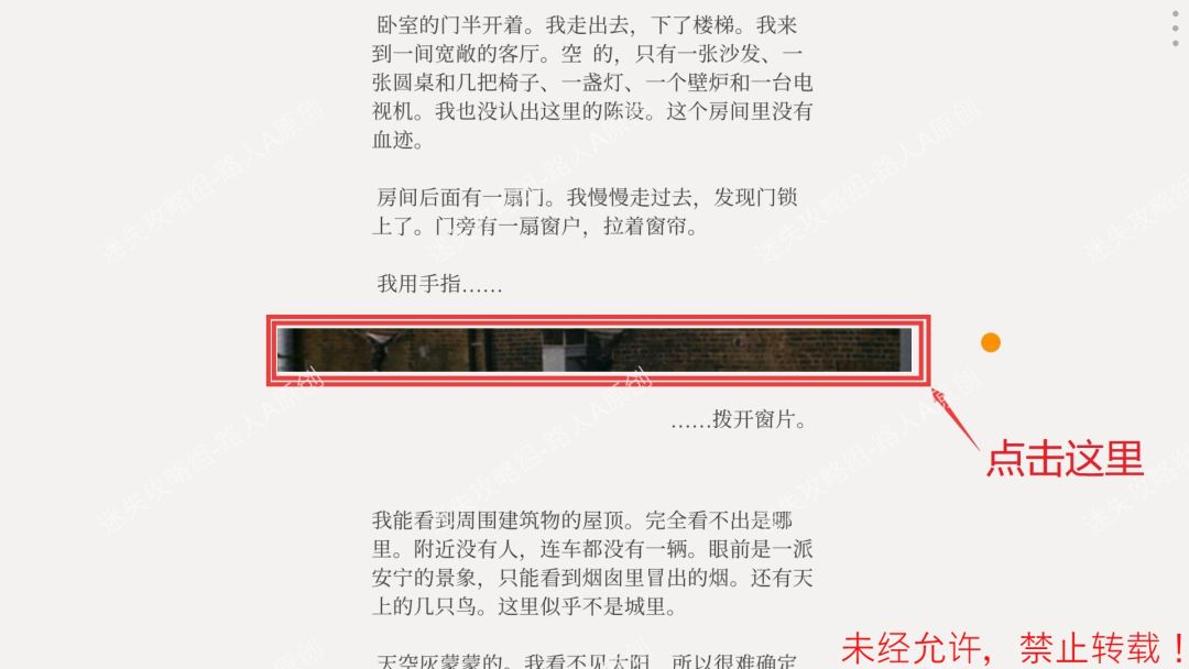 1.点击【我用手指拨开窗片】的图片,可以看到窗户外的景色,然后听到敲门声。1.1