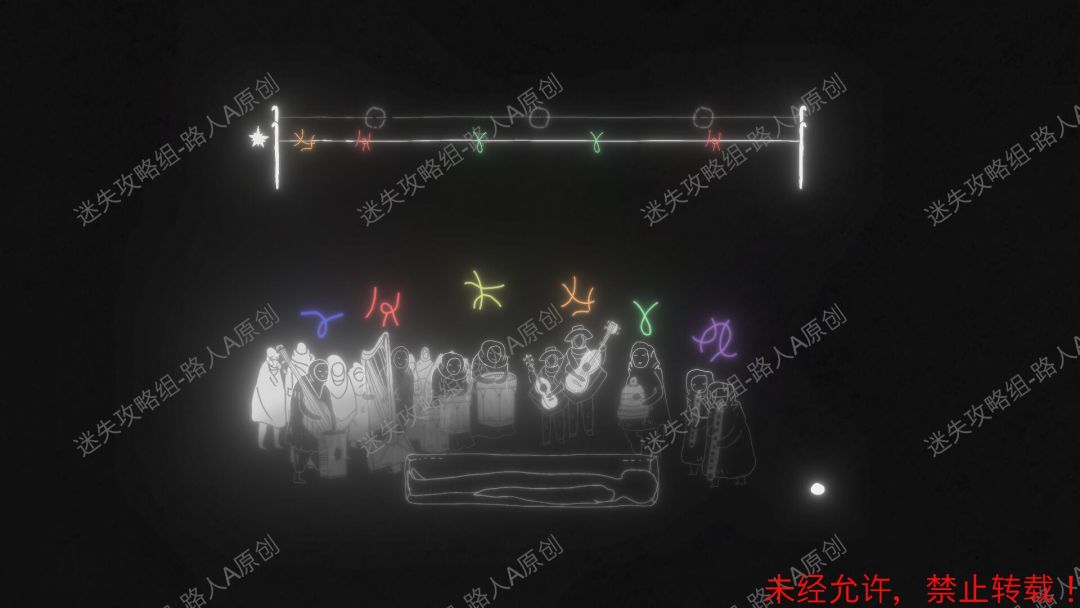 2.点击提灯的人,灯光里出现线条,用灯光里的线条补完上面的线条。2.1、2.2、2.3、2.4