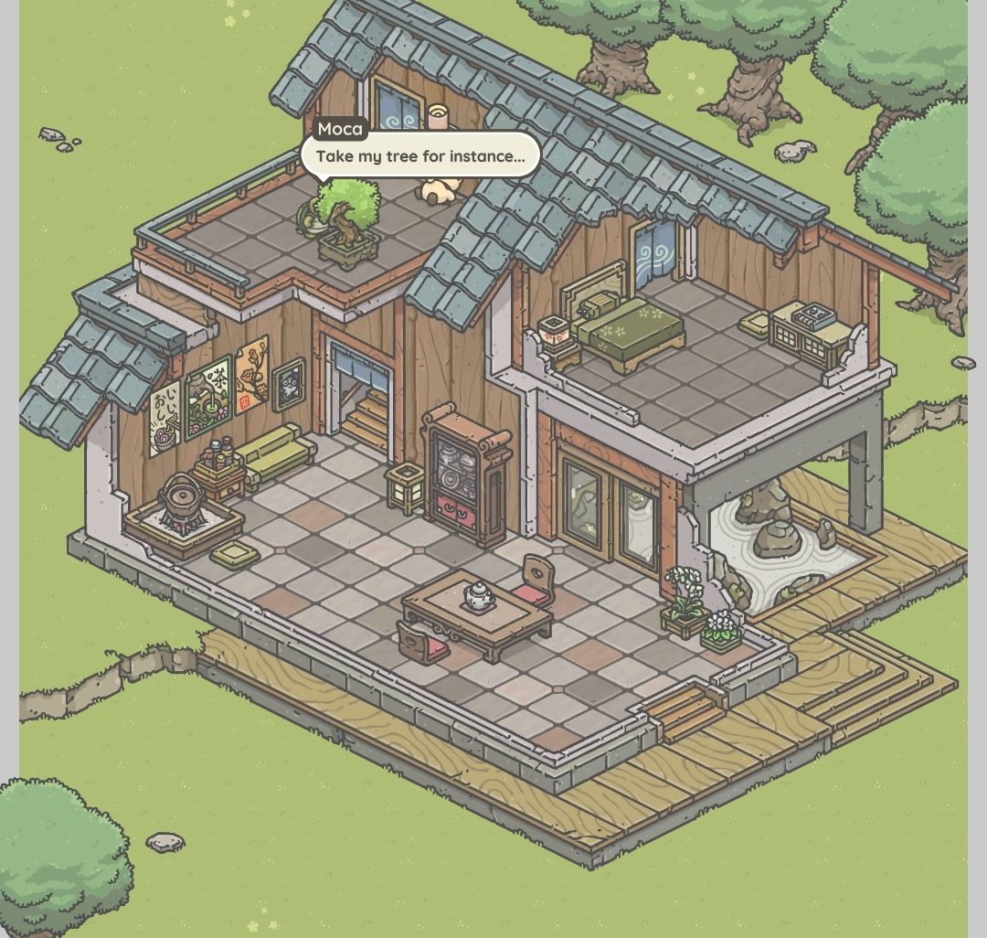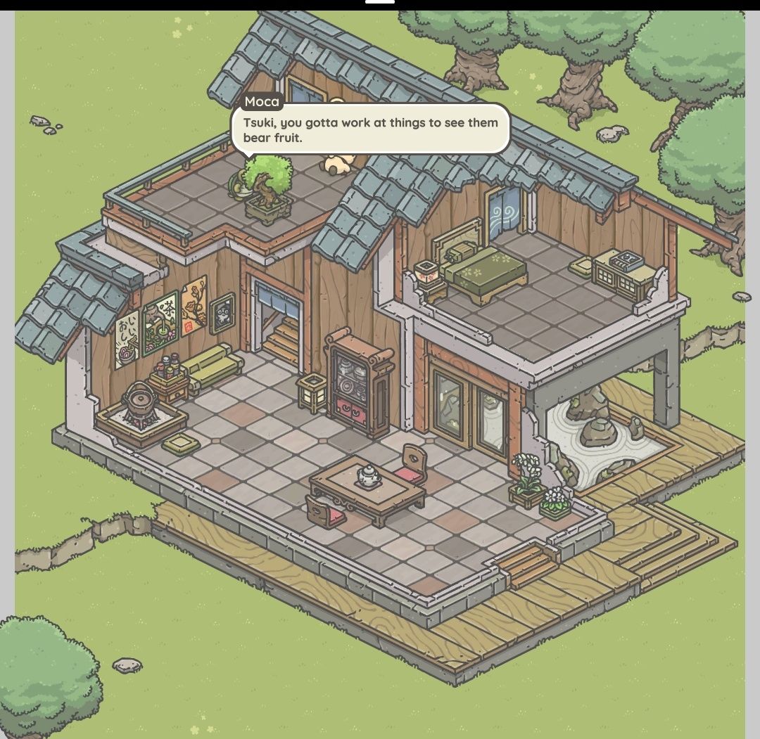 当莫卡问兔兔是不是它把盆栽弄坏的时候,如果选择是,莫卡会非常生气,而且在给胶水的时候逗莫卡的话(一直不给它),后面还会触发莫卡要求兔兔去买化肥的剧情(因为盆栽有些枯了);如果否认是自己做的,莫卡会有些怀疑但不会生气,也不会让兔兔买化肥了。