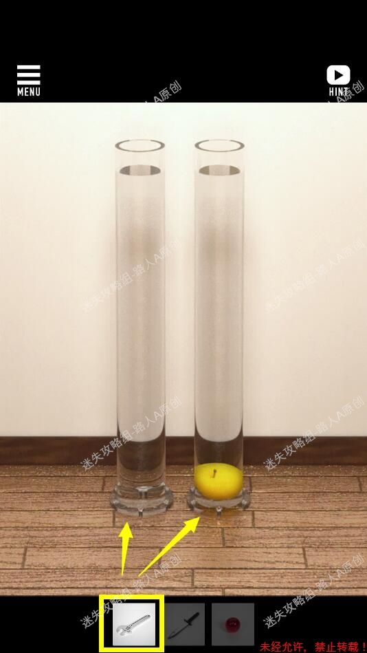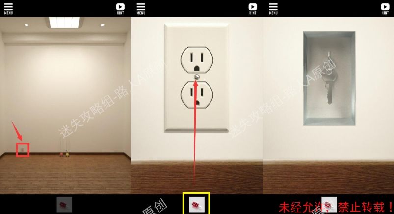 4.点击两个玻璃管左边墙上的插座,用螺丝刀打开插座,取得钥匙。4.1、4.2、4.3