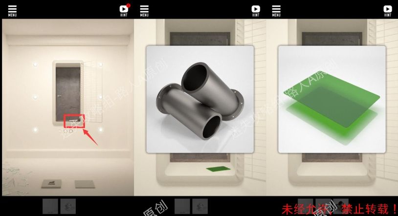 18.点击门,捡起绿色胶片和铁管。18.1、18.2、18.3