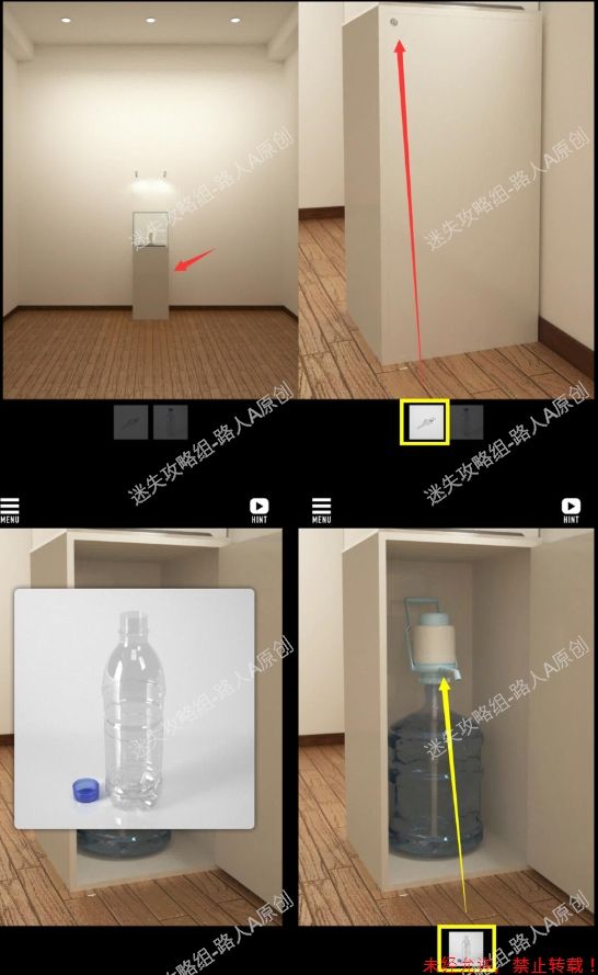 6.点击展示柜的右侧,用钥匙打开柜子,拧开塑料瓶的盖子,用塑料瓶装水。6.1、6.2、6.3、6.4