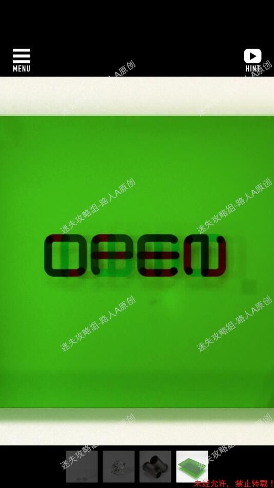 19.点击墙上的图形,使用绿色胶片,获得提示:OPEN。19.1、19.2