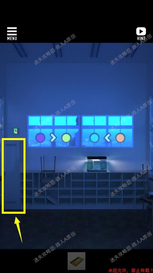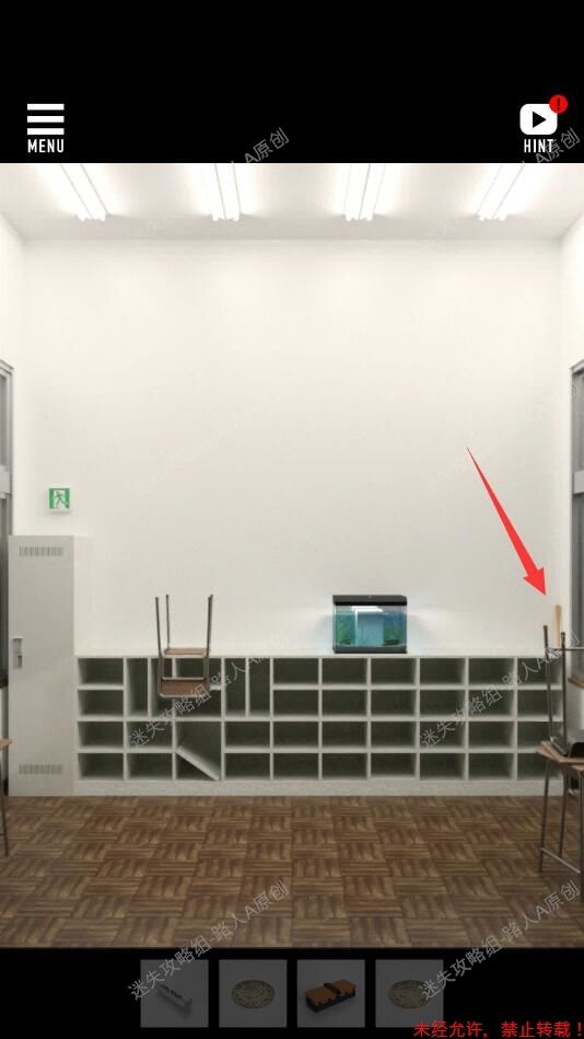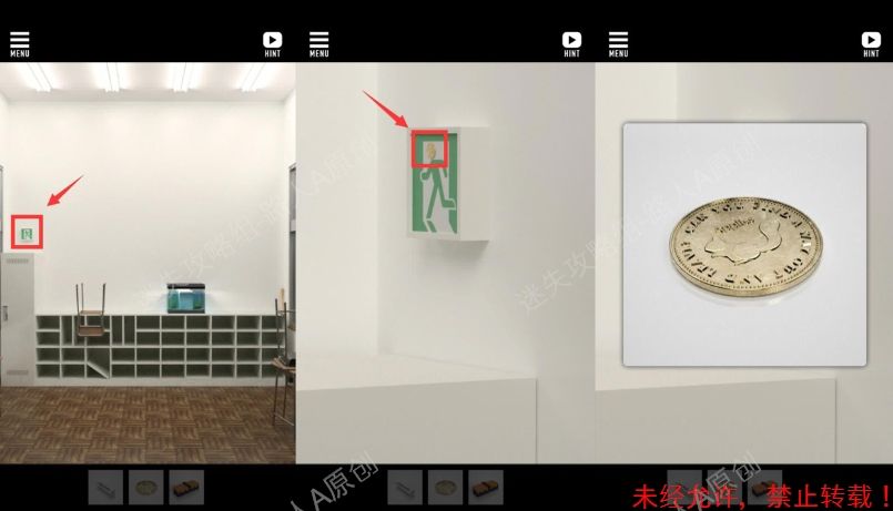 4.点击储物柜上面的紧急出口标志,取得硬币。4.1、4.2、4.3