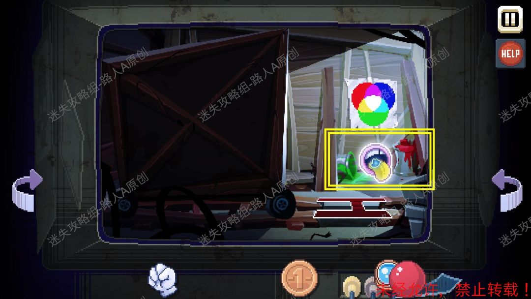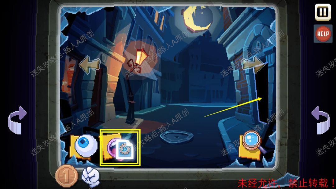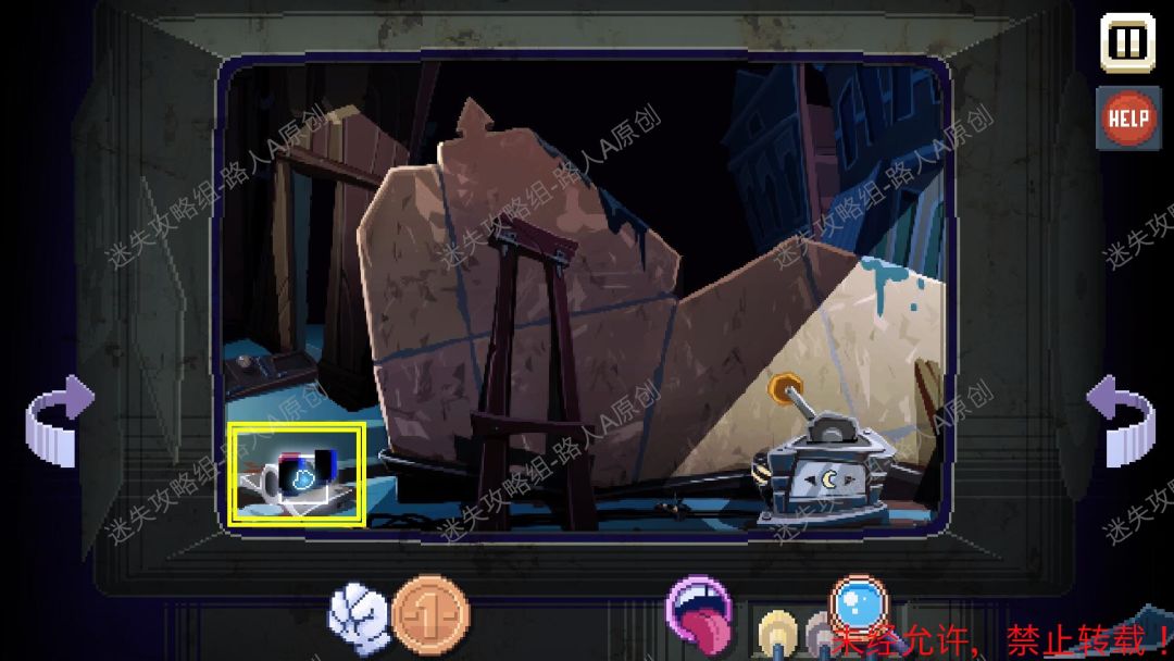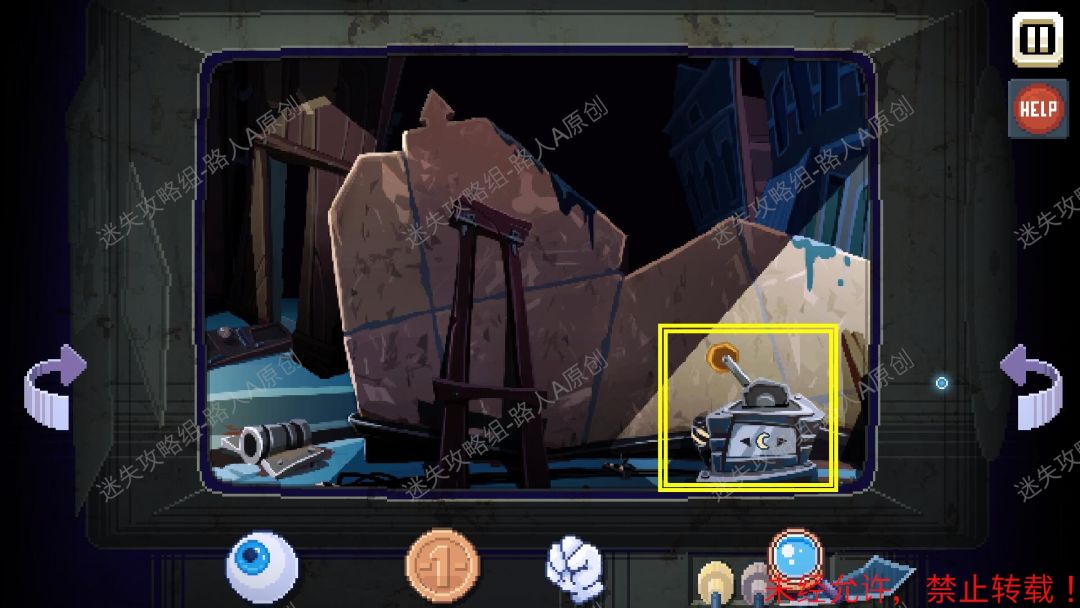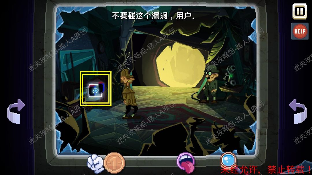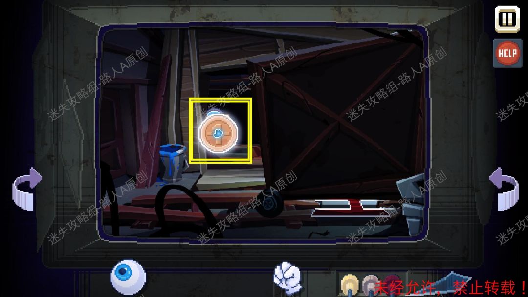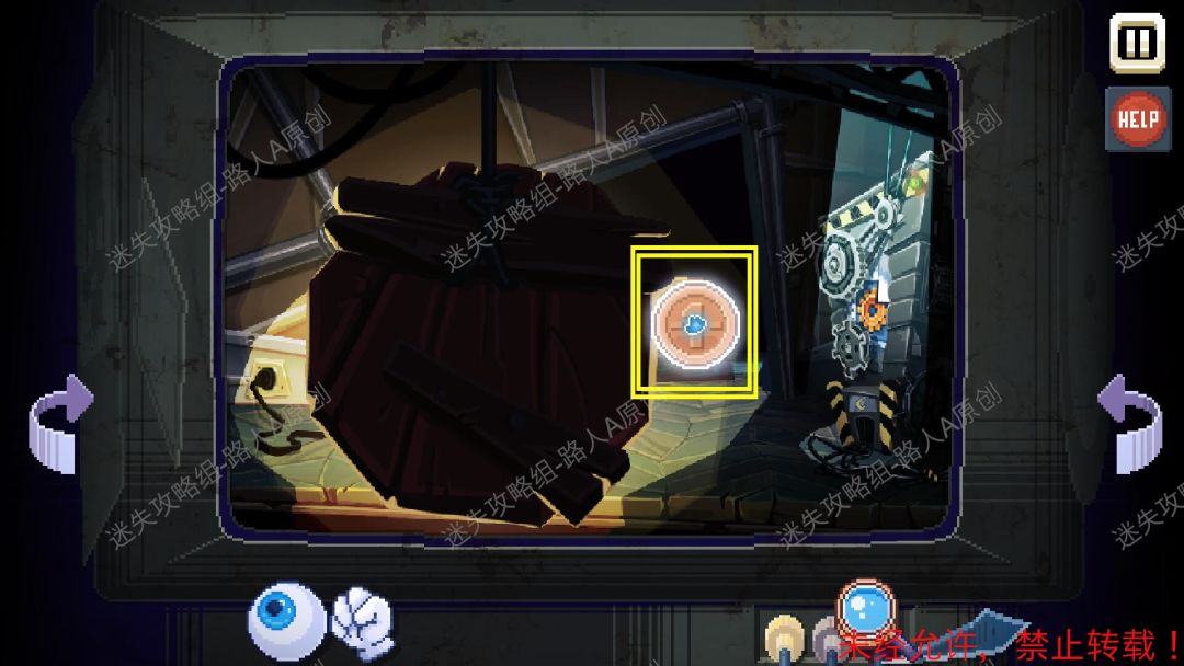 27.用拳头打井盖,用玻璃碎片翘掉放大镜旁边出现的黄色纸片(要在硬币黏上之前,如果错过了,读档再来),获得硬币。27.1、27.2
