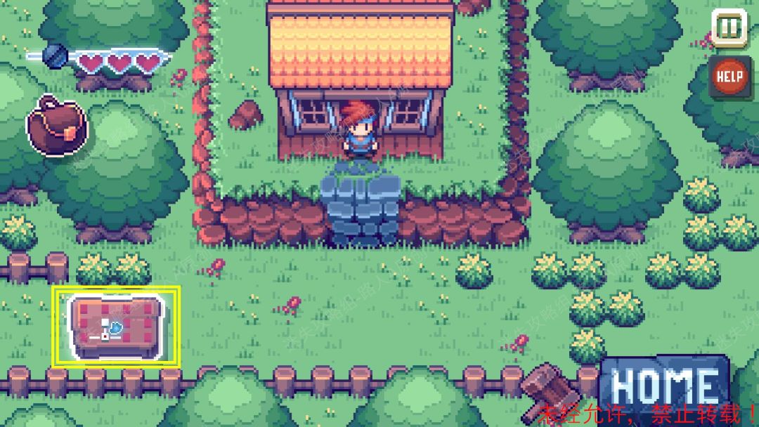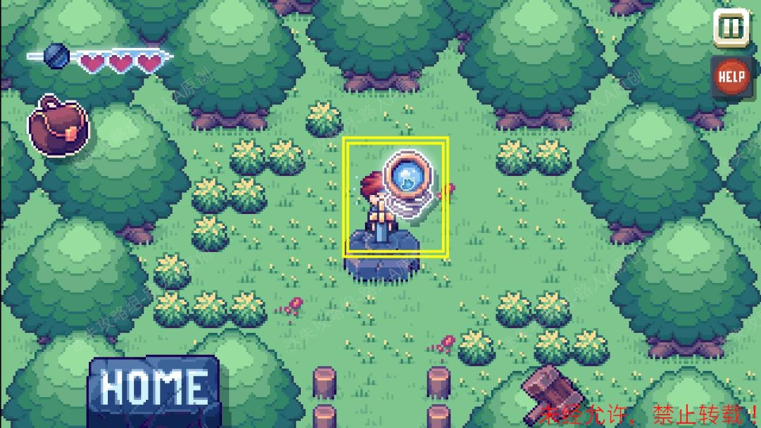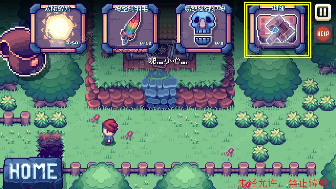 57.点击背包,用锤子敲击地图,获得地图。把地图放到草地的洞口上,使英雄通过洞口。57.1、57.2