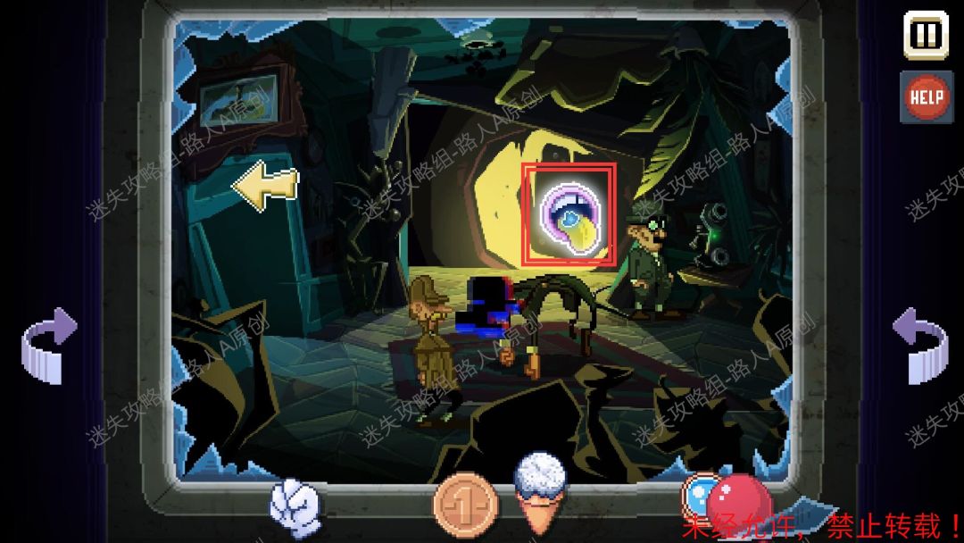 31.转到电视机的正面,在舌头图标上使用齿轮邮票,然后进入右边的门(福尔摩斯和华生刚才进入的门)。31.1