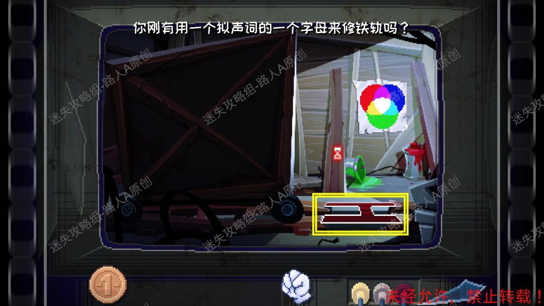 36.返回左边的房间,转到电视机的背面,用字母H补上铁轨的空位。36.1