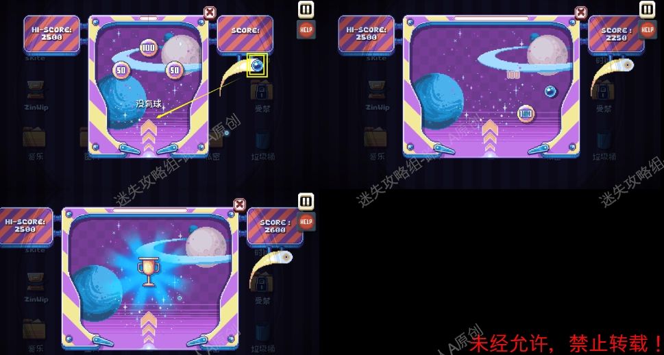 12.点击垃圾桶,玩“弹球游戏”,得分2600,获得奖杯。12.1、12.2、12.3