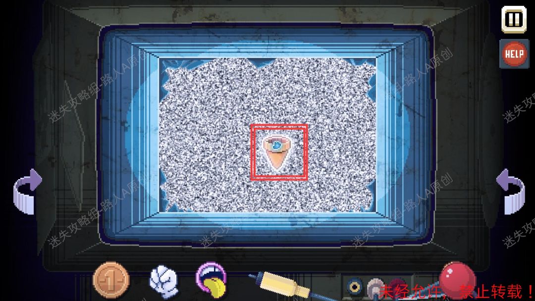 44.转到电视机的正面,进入地上的舱口,然后转到电视机的背面,用舌头舔掉冰淇淋,获得圆筒。拔掉电视下面的黄色插头,在雪花屏幕上使用圆筒,获得雪圆筒,再把黄色插头插回去。44.1、44.2