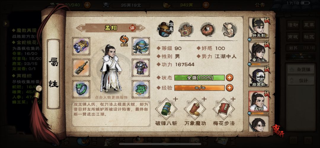 孟目前在培养,打算把凌烟换下作一队,目前小林子无暇长生,打算把乾元功传给李,长生传给孟放弃万象,大佬们给点意见是继续使用万象作后排还是用长生当后排能奶能输出。