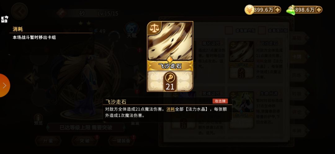 飞沙走石,每多一个水晶多一次攻击,强化后每次21,可以最少84的输出。搭配奥里耶一次攻击能打个200多。