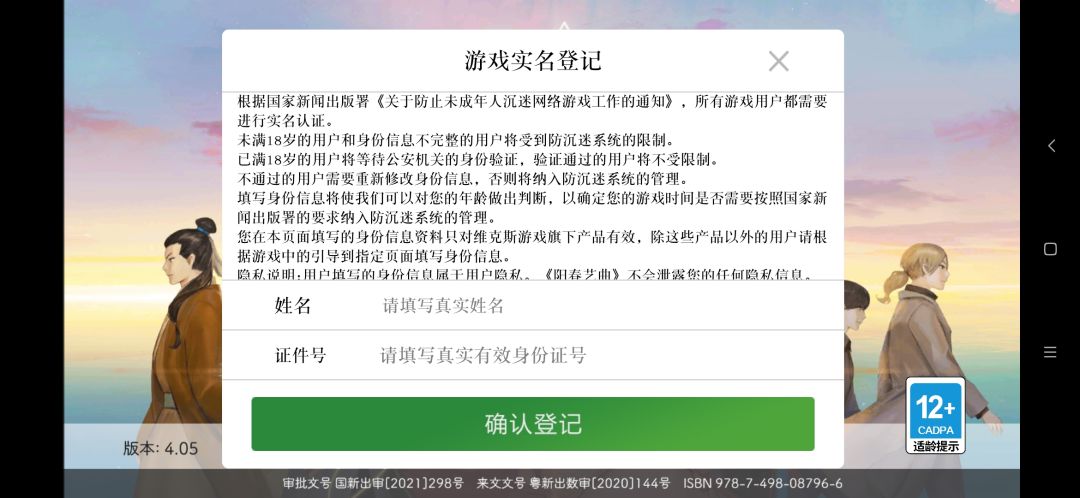 你们游戏是不是有点毛病?每次进去都要填一下这个实名,有时过场加载久的我都想重开,好几次打完歌他就停在那,继续也没有,过没过也没有