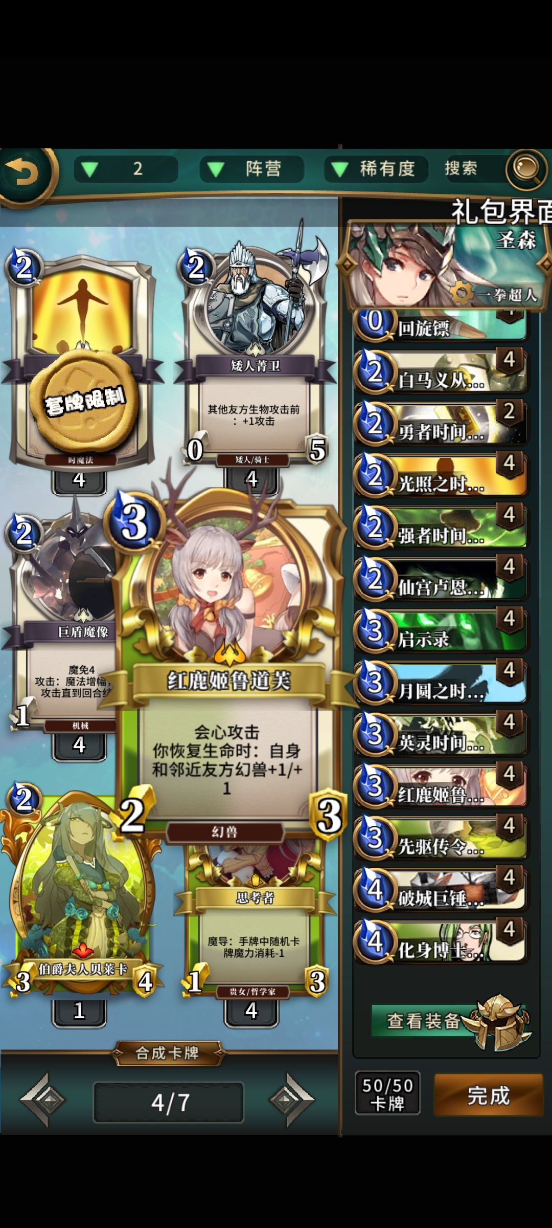 两张不错的生物牌,自身带暴击,白马自带行军效果。降低了卡组容错率,避免了满手法术没有生物的现象。