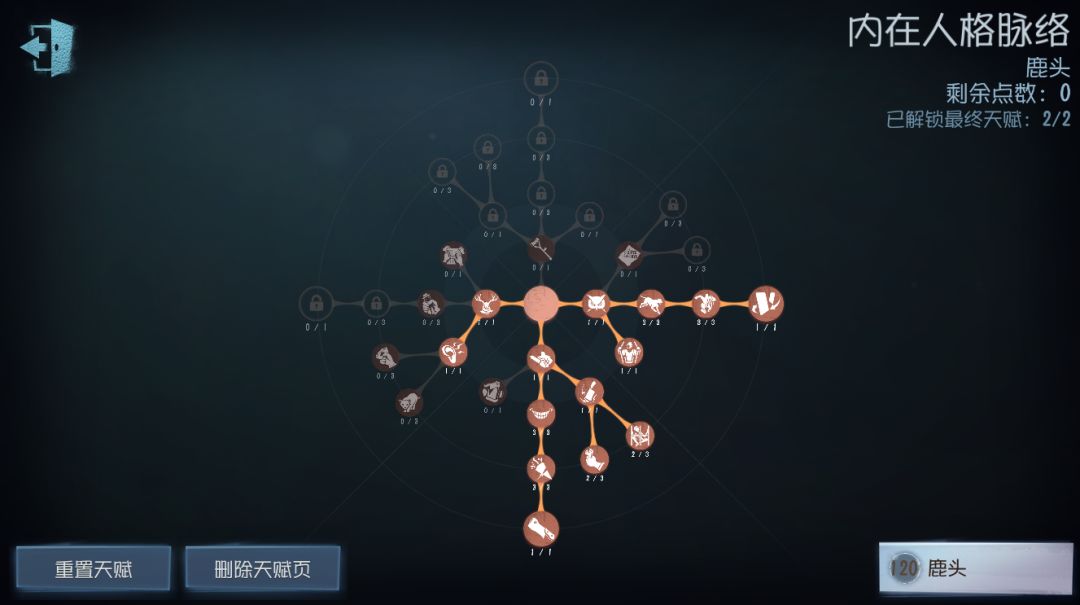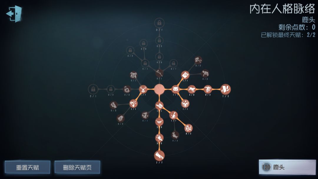 如果是月亮河公园、里奥的回忆等大地图,鹿头可以携带此套天赋。点出【拘禁狂】加快狂欢之椅起飞倒计时速度,更容易淘汰狂欢之椅上的求生者。【报幕】在大门通电时能提供场上求生者的位置,配合【挽留】以及鹿头的实体能力【愤怒链爪】能更大程度提升开门战能力。