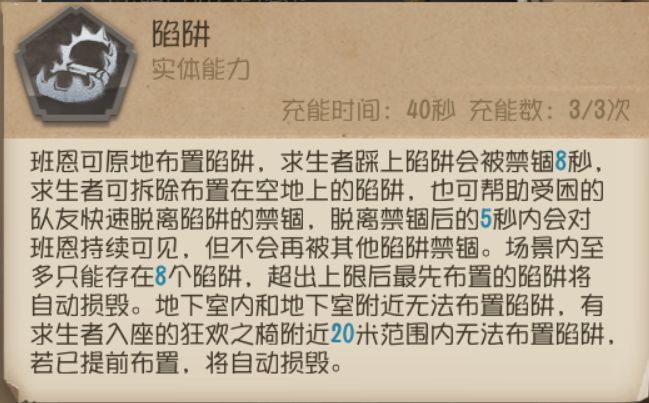 对局中仅剩一名可以自由活动的求生者时,鹿头可以在地窖的四周布置陷阱,以防止求生者跳地窖逃脱。同时自己则利用链爪快速移动,寻找求生者。