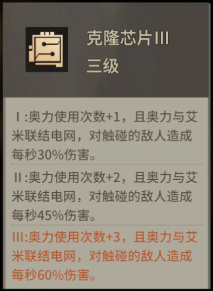 克隆芯片也是个强力的存在,不仅可以增加奥力的使用次数,还能造成额外的伤害。如果好好利用的话,也可能成为对怪物致命的打击呢~