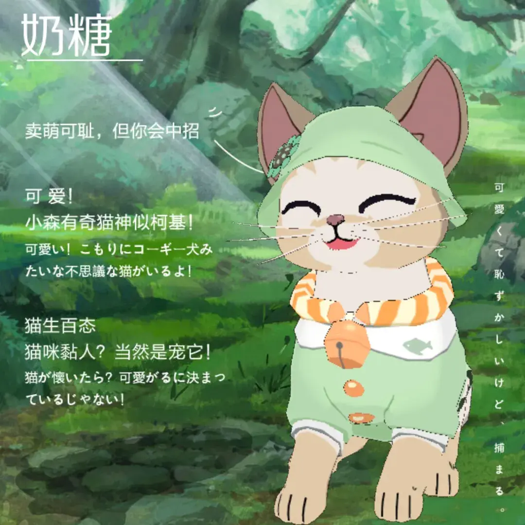 以上就是8只将会和村民们见面的小猫咪啦。只要通过喂食稀有猫粮,就可以把它们带回家!不知道它们之中你最钟爱谁呢?喵🐱