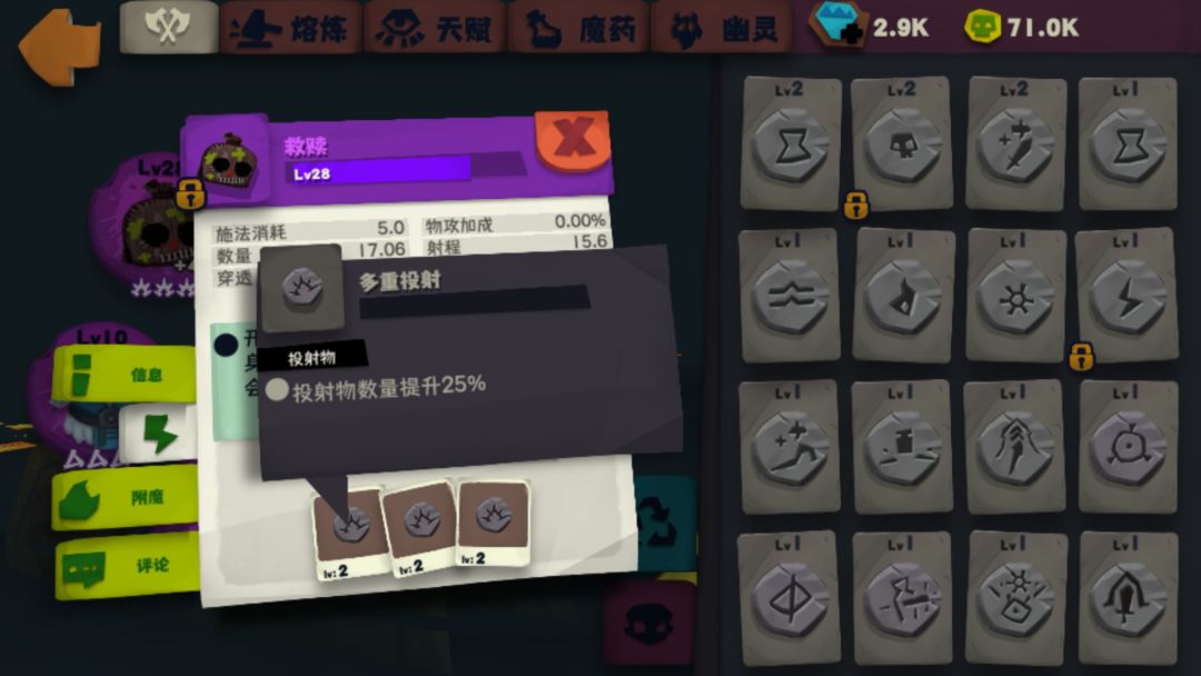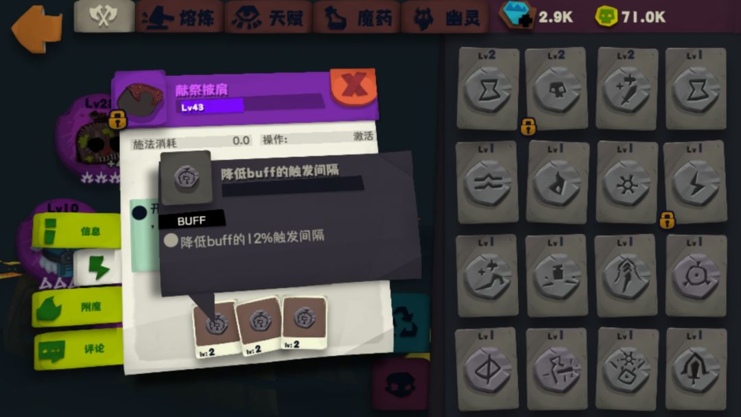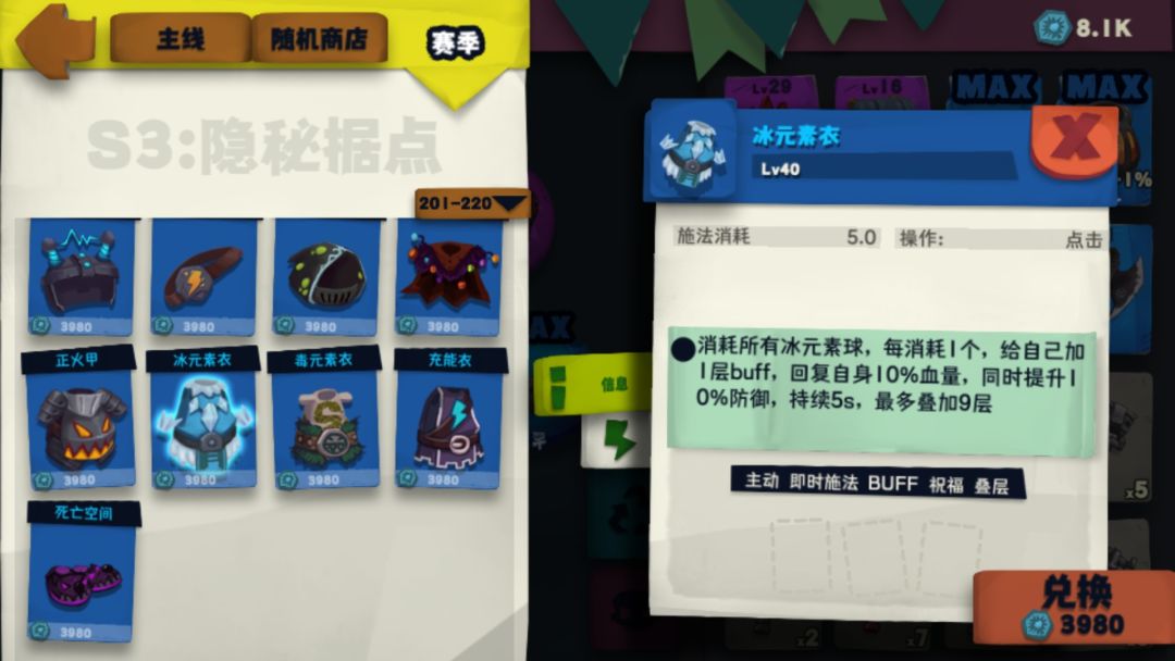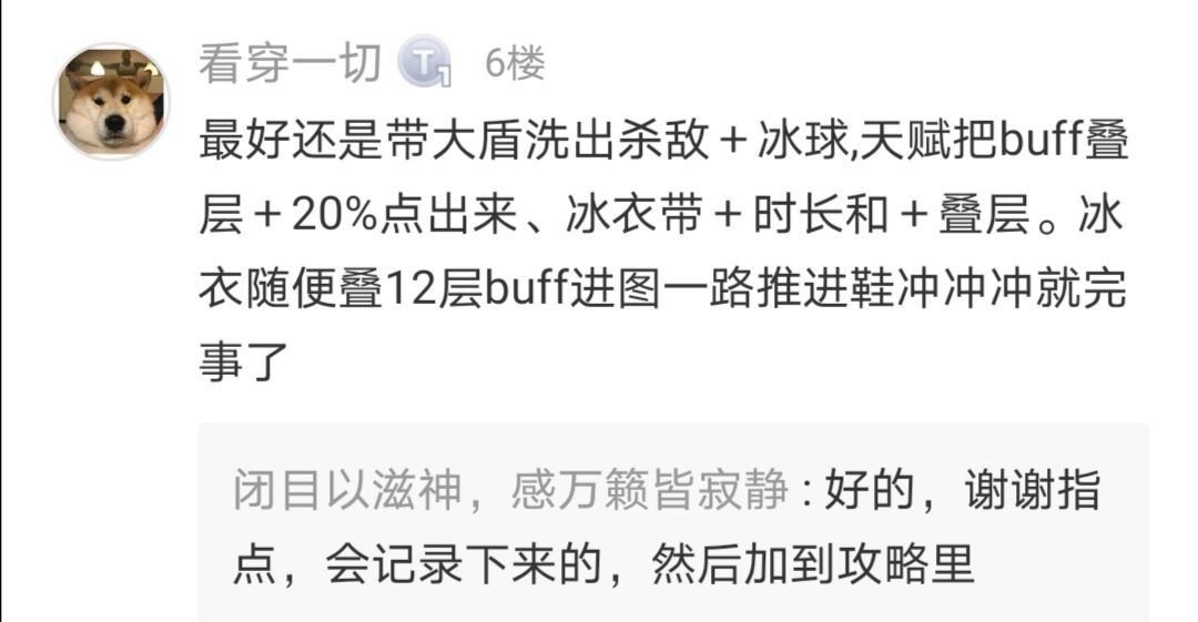 冰元素衣服符文可能有人会说应该要Buff叠加上限,而不是buff时间。这里我个人觉得前期用时间buff,因为2级的冰球符文触发几率是百分之25。触发几率有点低,我实测时候冰衣buff9层以后突然刷不出来冰球的情况是有的,会无法保持满层buff的续航,所以大家自行选择吧。