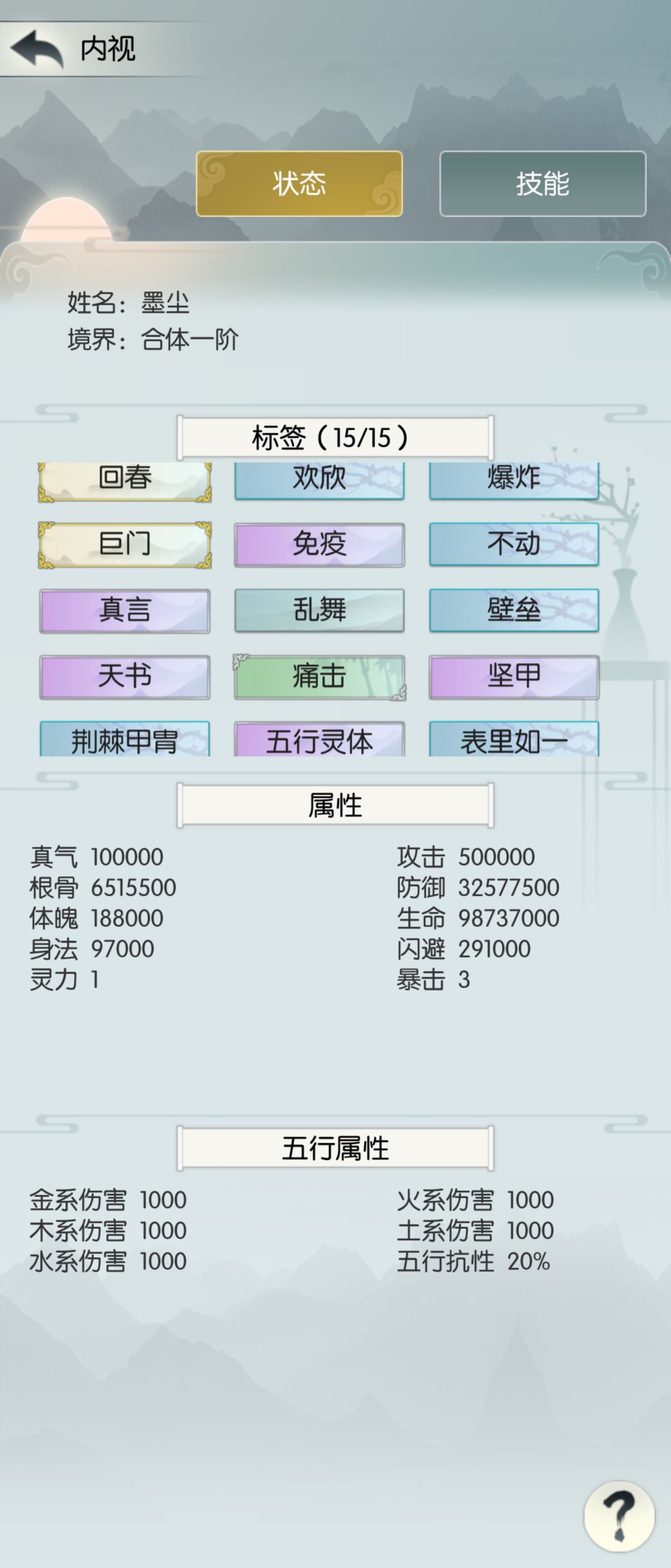 1. 开场先买10个混沌丹,买一个随机技能,境界升到筑基,之后沙子按照根骨体魄4/1或者3/1分配